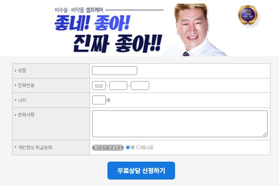 ※ 상담전화를 직접하기가 꺼려진다면 상담내용란에 상담가능시간을 남겨주면 원하는 시간에 편안하게 상담받을 수 있다.